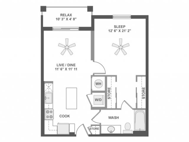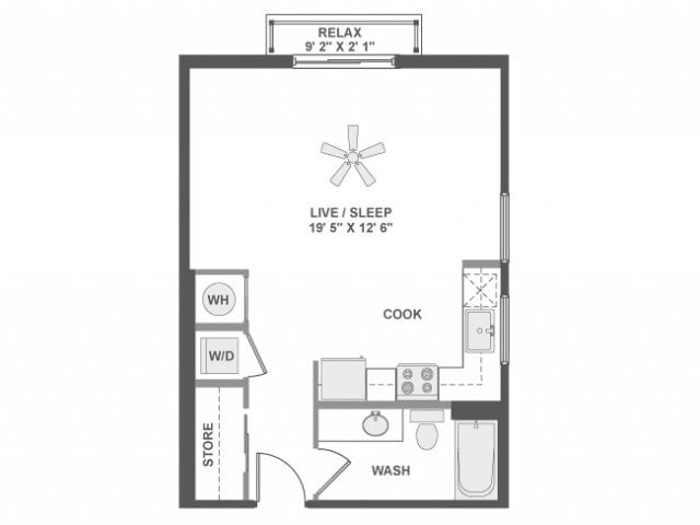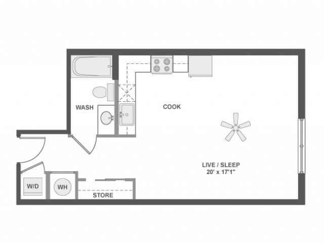 Studio, 1 Bath, 648 sq ftLargest StudioThis is the largest Studio at this PropertyModel Gallery