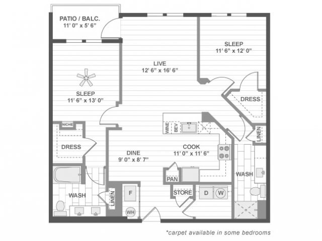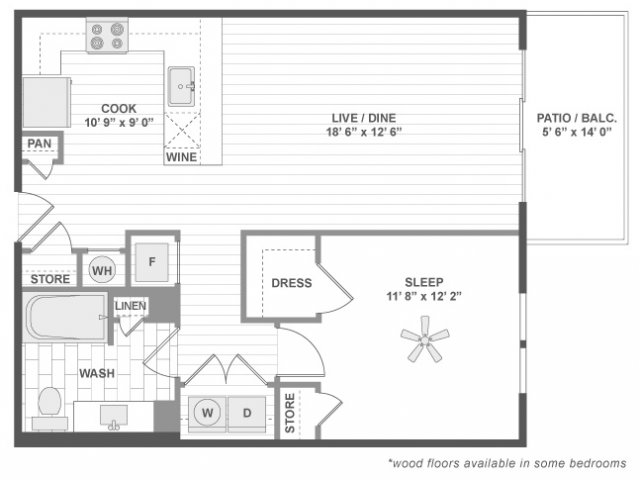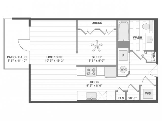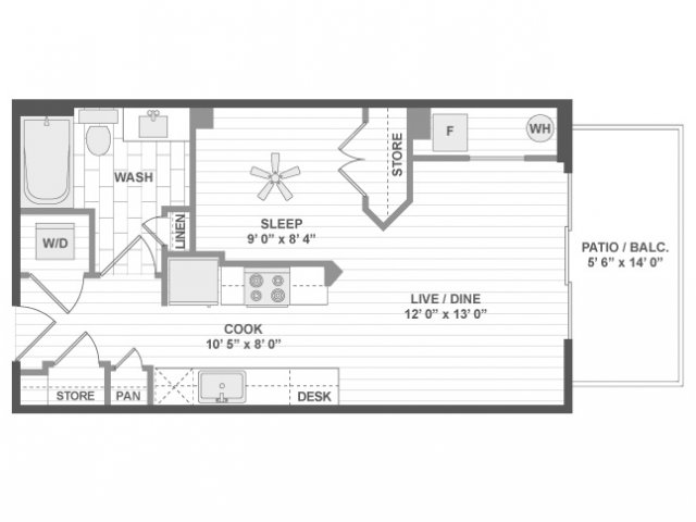Studio, 1 Bath, 631 sq ftLargest StudioThis is the largest Studio at this PropertyModel Gallery
