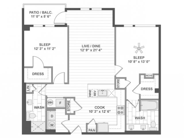 Apartment Model: A3From $2,1811 Bedroom, 1 Bath, 722 sq ftAvailable Now![]()