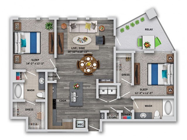 Apartment Model: A3From $1,7731 Bedroom, 1 Bath, 740 sq ftAvailable Now![]()