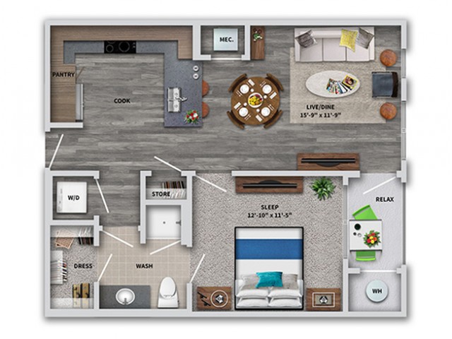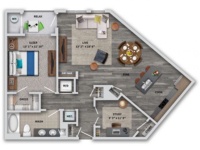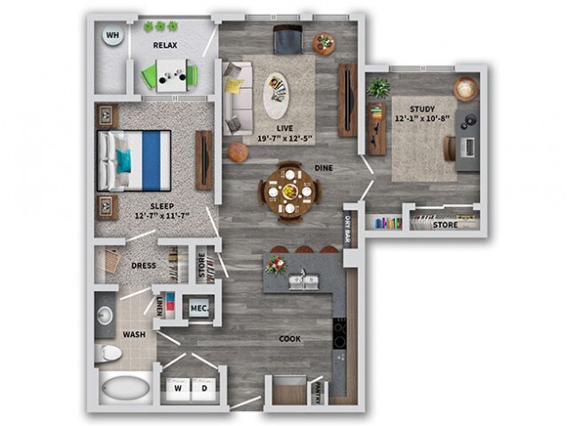 1 Bed, 1 Bath, 817 sq ftAvailable NowLargest 1 BedroomThis is the largest 1 Bedroom at this PropertyModel Gallery