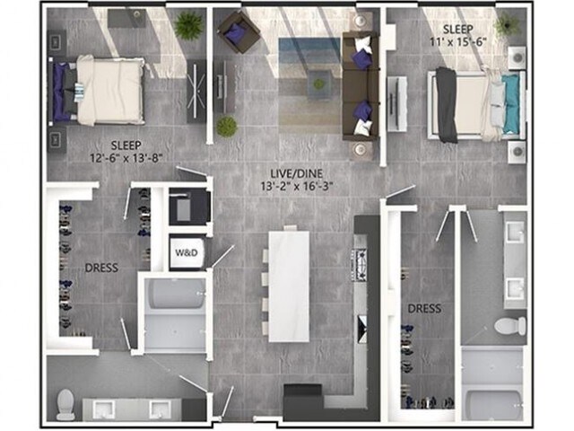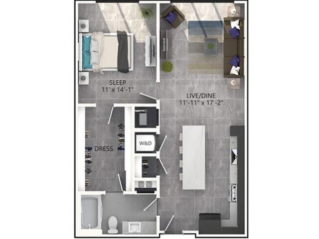 E1P - Floorplan 1 Apartment Unit: North A-851Apartment Model: E1PFrom $3,064Studio, 1 Bath, 534 sq ftAvailable January 24, 20261 Bedroom