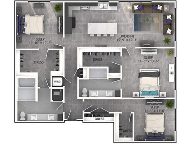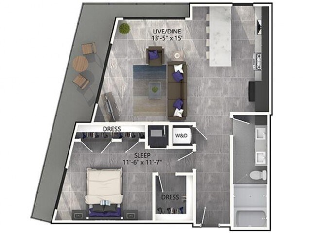 A3P - Floorplan 1 Apartment Unit: North B-1407Apartment Model: A3PFrom $3,6001 Bedroom, 1 Bath, 718 sq ftAvailable NowFloorplan A4P