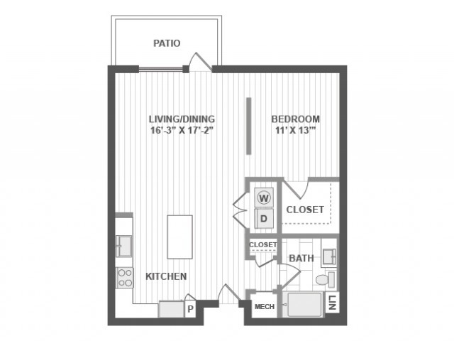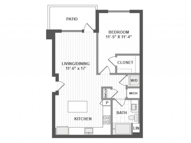 E2 - Floorplan 1 Apartment Unit: 1-536Apartment Model: E2From $2,762Studio, 1 Bath, 763 sq ftAvailable NowFloorplan E1