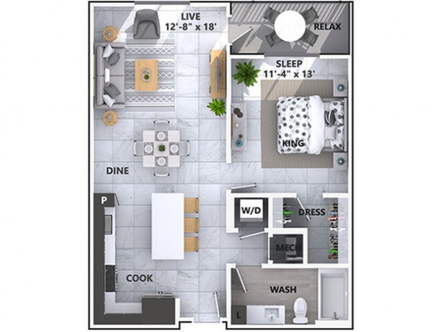 A3a - Floorplan 1 Apartment Unit: 1-525Apartment Model: A3aFrom $2,5101 Bedroom, 1 Bath, 795 sq ftAvailable NowFloorplan A4