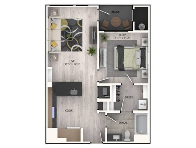 Studio, 1 Bath, 638-671 sq ftAvailable NowModel Gallery