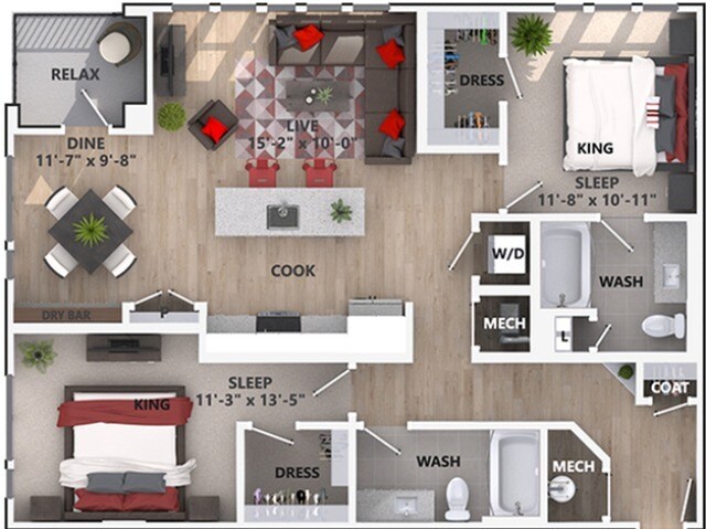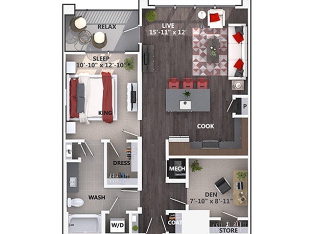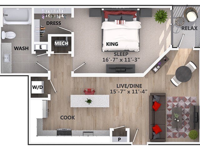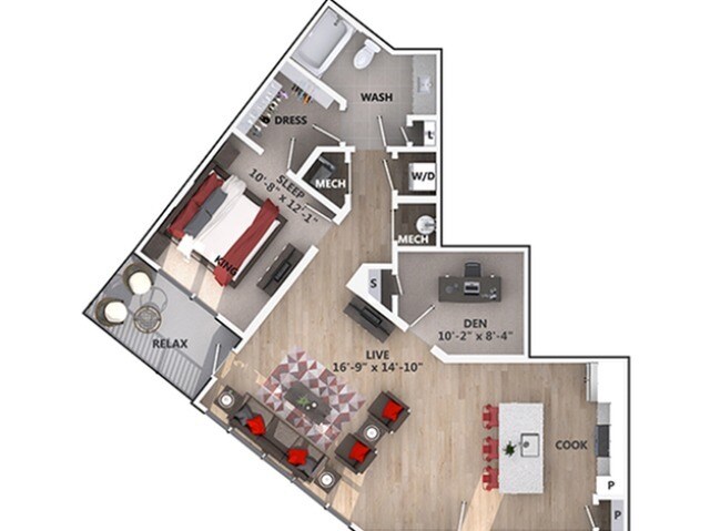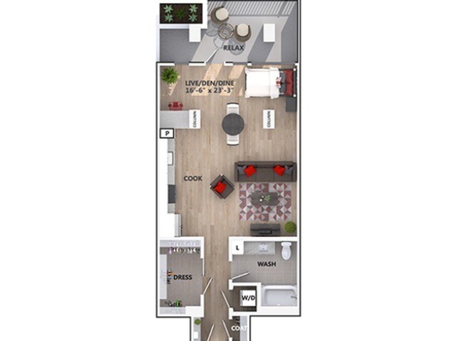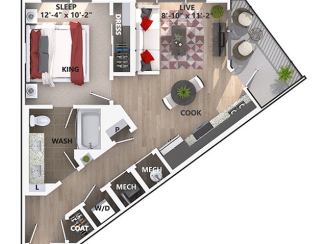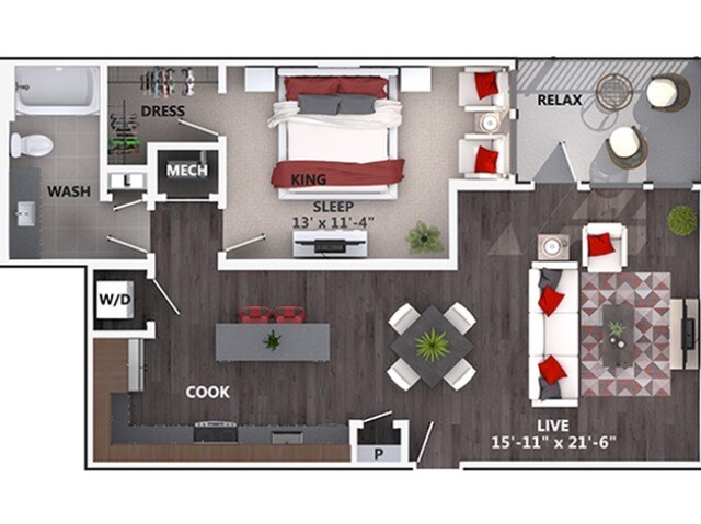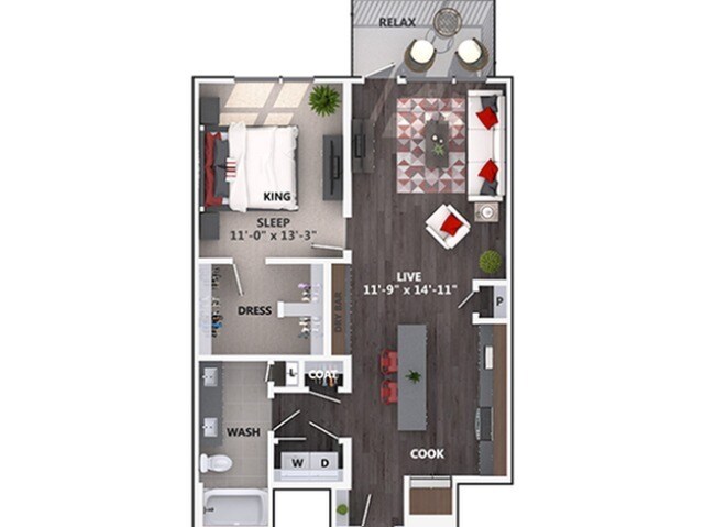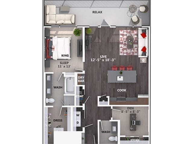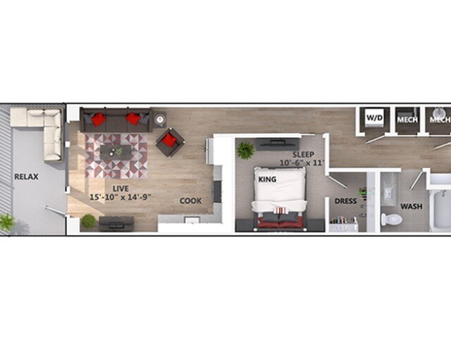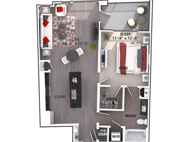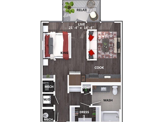 Studio, 1 Bath, 616 sq ftAvailable NowModel Gallery