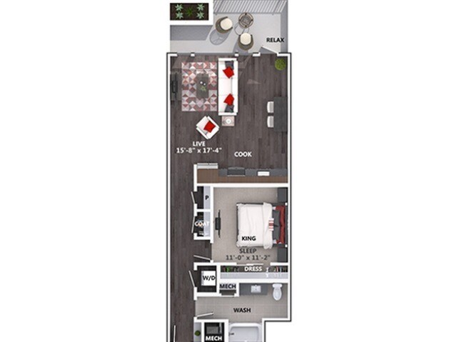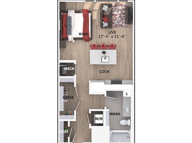 E1 - Floorplan 1 Apartment Unit: 1-111Apartment Model: E1Studio, 1 Bath, 578 sq ftAvailable NowFloorplan E2