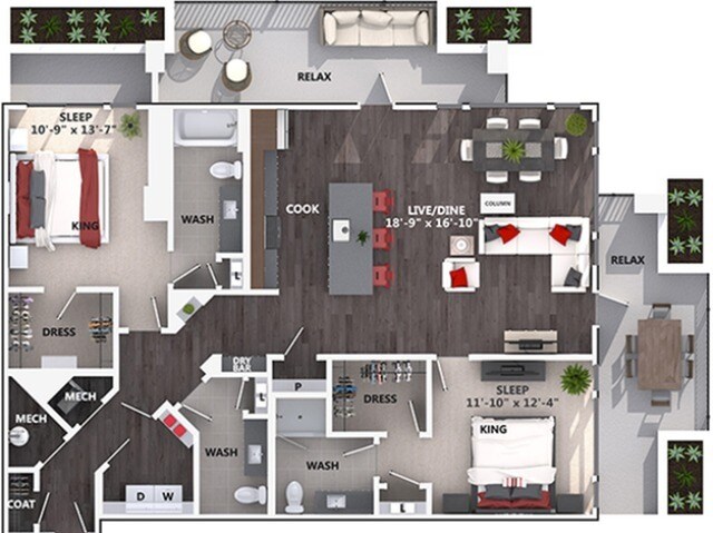 Apartment Model: E5Studio, 1 Bath, 748 sq ftUnavailable![]()