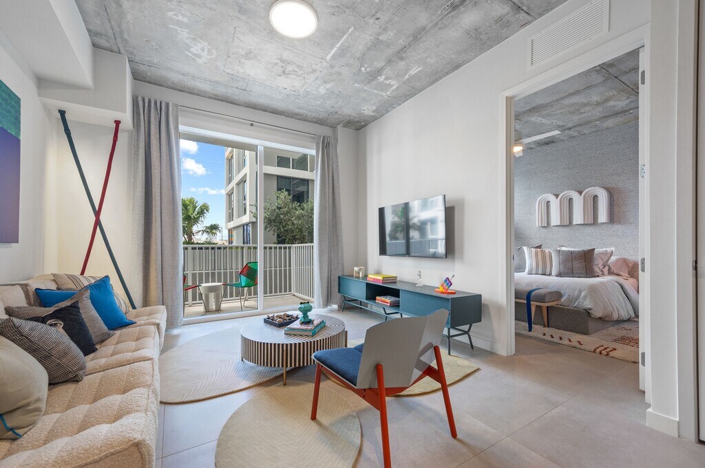 Experience Miami's hottest international neighborhood with some of the largest floor plans in Wynwood. Our apartments in Wynwood give you ideal spot to explore the innumerable galleries, ever-blossoming fashion scene and the latest and greatest in Miami dining and night life. Select from 1-3 bedrooms and studios, all with porcelain tile floors, Kohler fixtures, walk-in closets, in-unit laundry and high-end appliances. Resident amenities are premium as well, with a rooftop pool, fully-equipped 24/7 gym, co-working spaces and private offices, on-site pet park and wash, electric car charging and more.