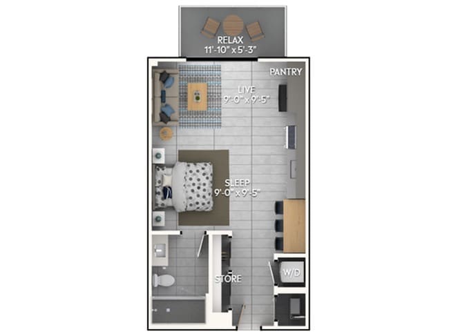 Studio, 1 Bath, 547-551 sq ftAvailable January 3, 2026Model Gallery