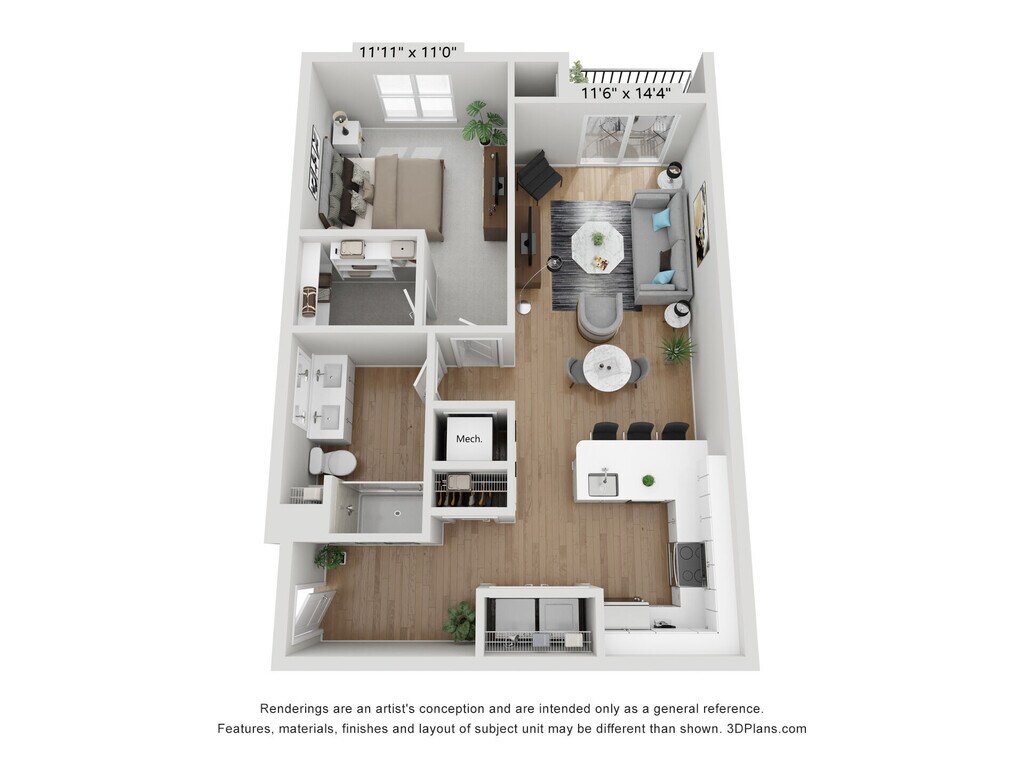 Studio, 1 Bath, 641 sq ftAvailable NowModel Gallery