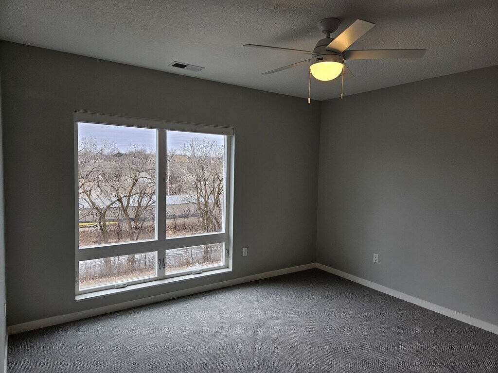 This spacious 1 bed/1 bath unit on the 2nd floor boasts 832 square feet of luxury living with fantastic views of the city or the river. The kitchen features quartz countertops, stainless steel appliances, tile backsplash, soft-close cabinets/drawers, crown molding, and center island. The bedroom has a walk-in closet and private access to the bathroom. There is LVT flooring throughout the living room/dining area and kitchen, carpeting in the bedrooms. Each unit has a full-sized front-load washer/dryer and a private balcony. This unit has a walk-in shower, 9’ ceilings with a 8’ entry door, floor to ceiling windows, brushed nickel finishes throughout, and dimmable lighting fixtures. Amenities include a fitness room, rooftop patio with fire table, grilles/blackstone surface cooktop, and 75” exterior TV w/surround sound, lounge with table shuffleboard and foosball, underground heated parking, EV charging stations, Olmsted Medical Facility on first floor, and Mineral Springs Brewery attached. This building sits adjacent to the heart of downtown Owatonna, within walking distance to shopping, dining, entertainment, and the river walking/bike paths. This is the perfect place to call home.