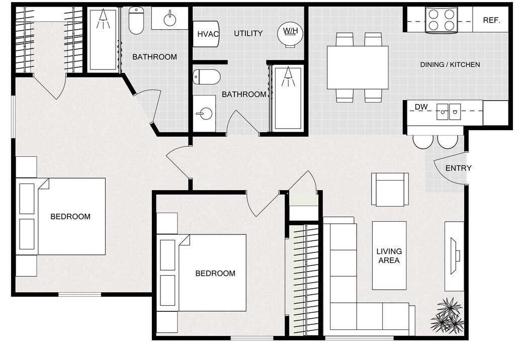 Apartment Model: Two Bedrooms Two BathroomFrom $1,0502 Bedroom, 2 Bath, 874 sq ftAvailable Now![]()