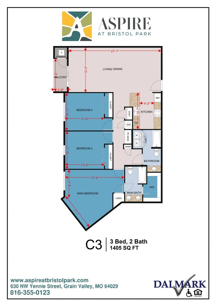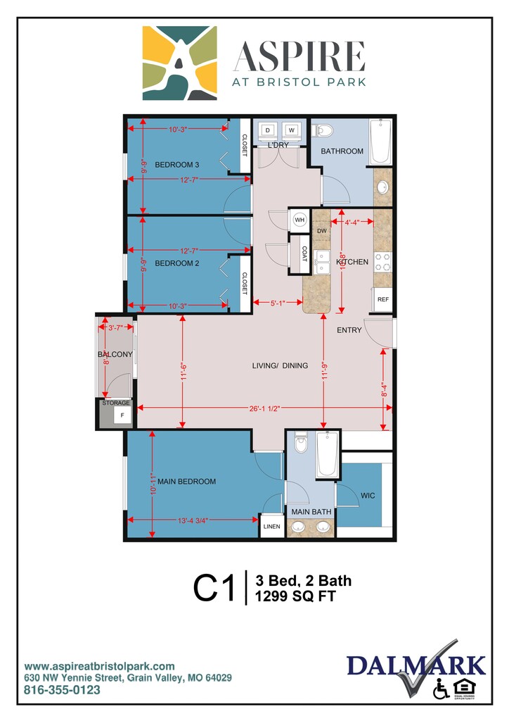 ASPIRE at Bristol Park offers 1 to 3 Bedroom apartments starting from $1,283 and having 695–1,405 sq ft. Here is the current pricing and availability: