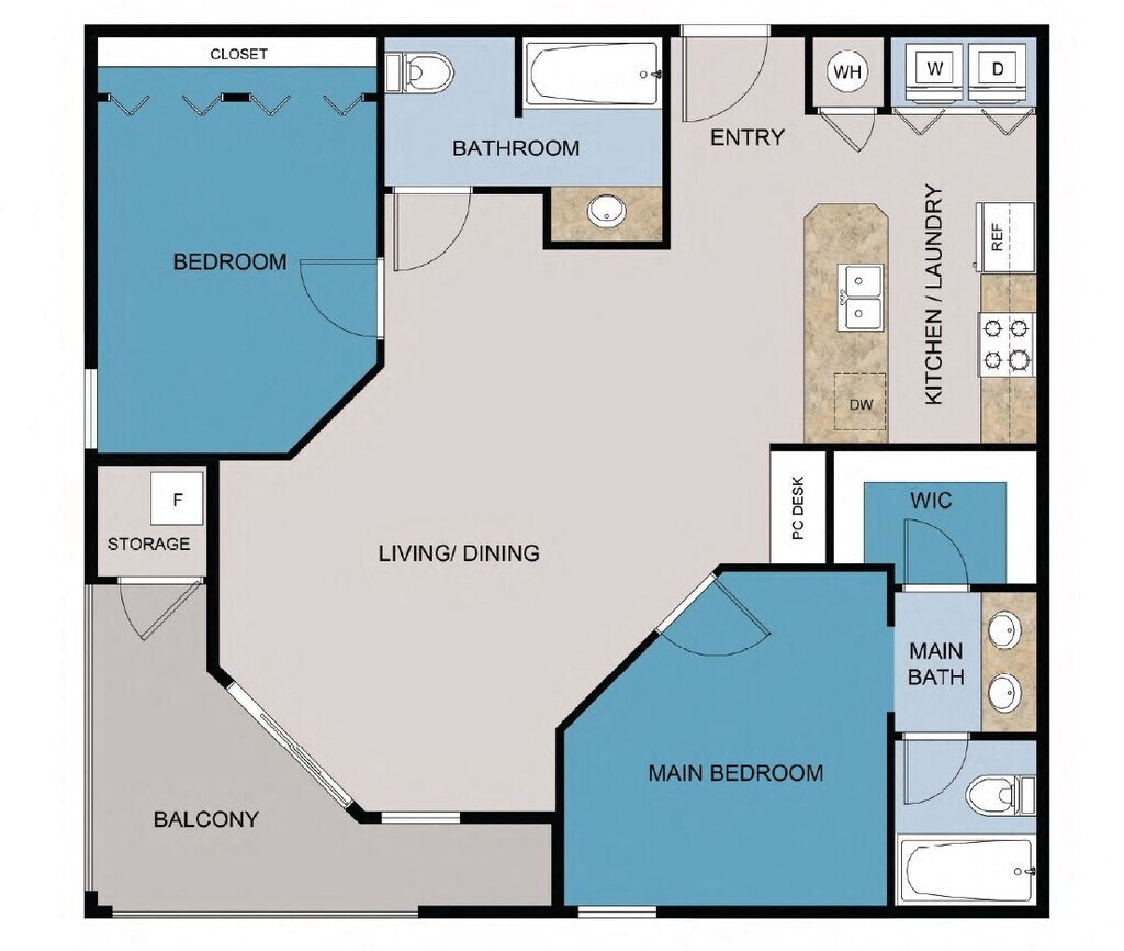 2 Beds, 2 Baths, 1172 sq ftAvailable NowCheapest 2 BedroomThis is the cheapest 2 Bedroom at this PropertyModel Gallery