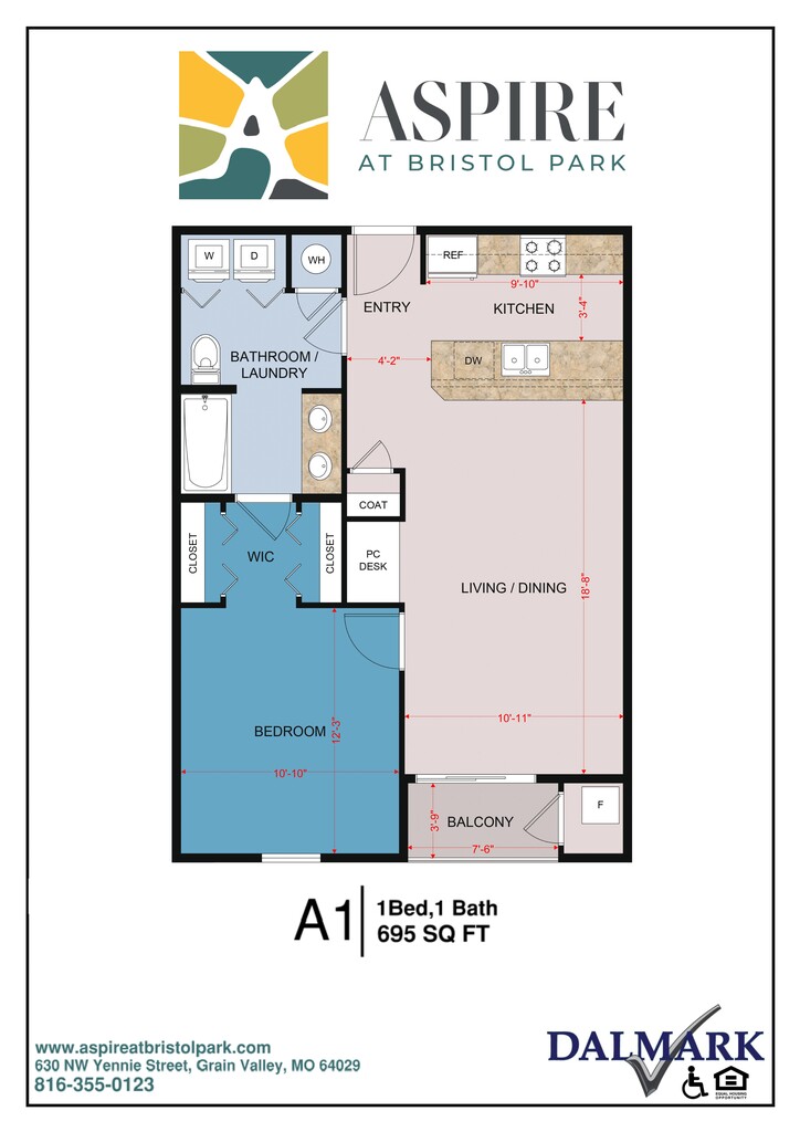Apartment Model: A1From $1,2831 Bedroom, 1 Bath, 695 sq ftAvailable Now![]()