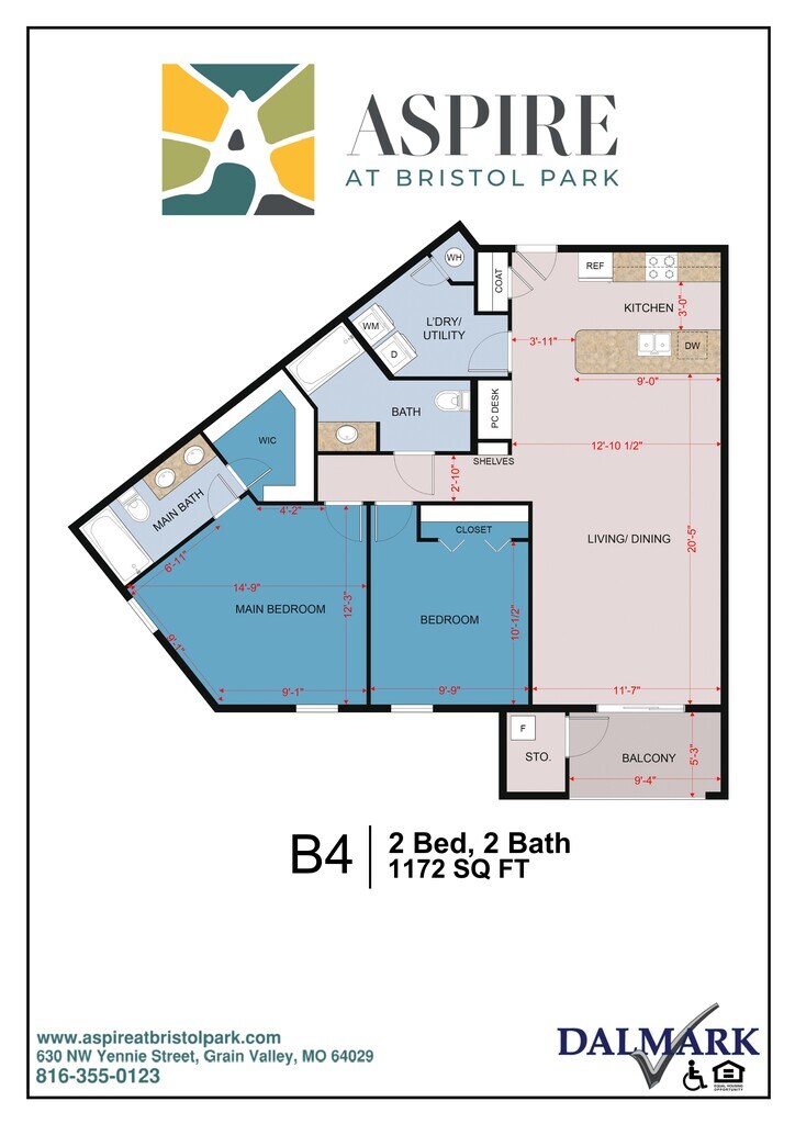 B4 - Floorplan 11 Apartment Unit: E-207Apartment Model: B4$1,3662 Bedroom, 2 Bath, 1172 sq ftAvailable NowFloorplan B2