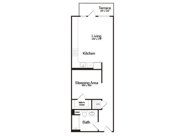 Apartment Model: A1.1 - 1.2From $2,896Studio, 1 Bath, 612 sq ftAvailable NowFloor plans are artist's rendering. All dimensions are approximate. Actual product and specifications may vary in dimension or detail. Not all features are available in every rental home. Prices and availability are subject to change. Base rent is based on monthly frequency. Additional fees may apply, such as but not limited to package delivery, trash, water, amenities, etc. Deposits vary. Please see a representative for details.