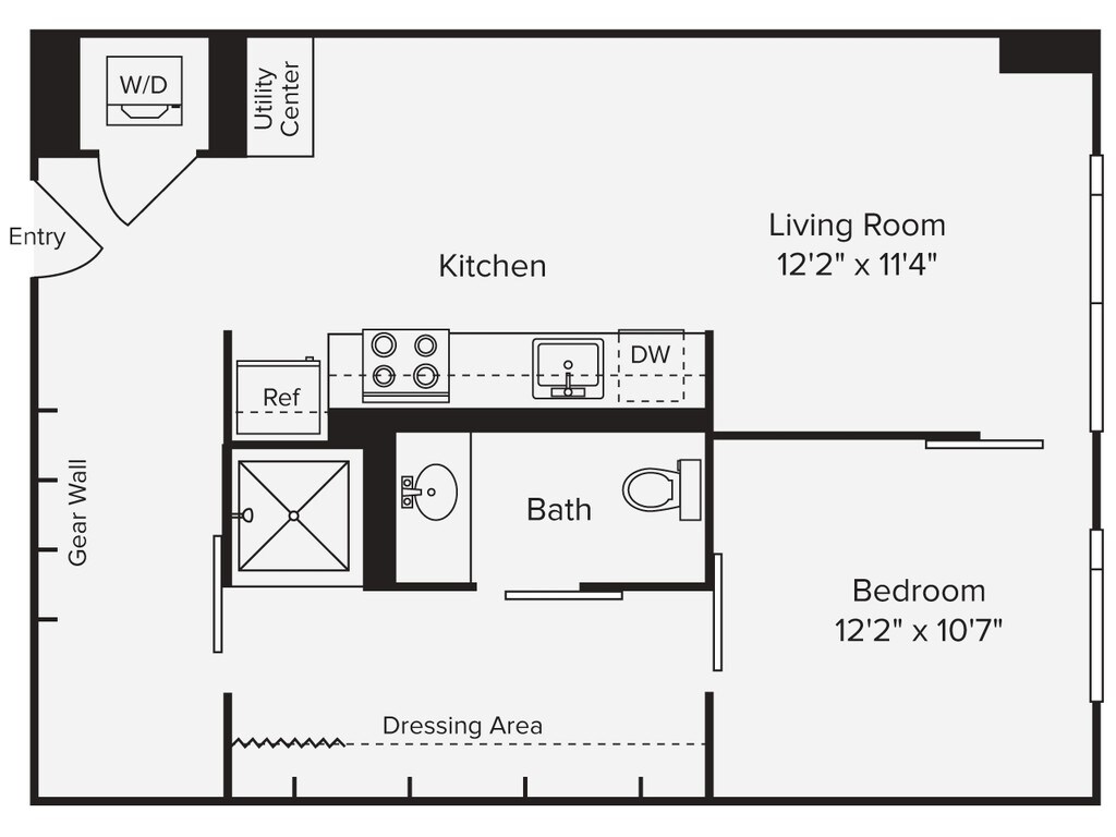 Studio, 1 Bath, 587 sq ftAvailable April 4, 2026Model Gallery