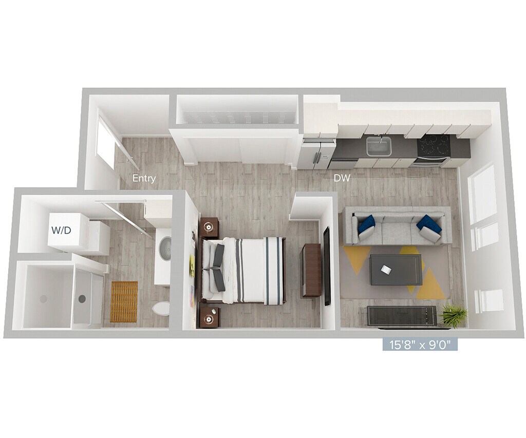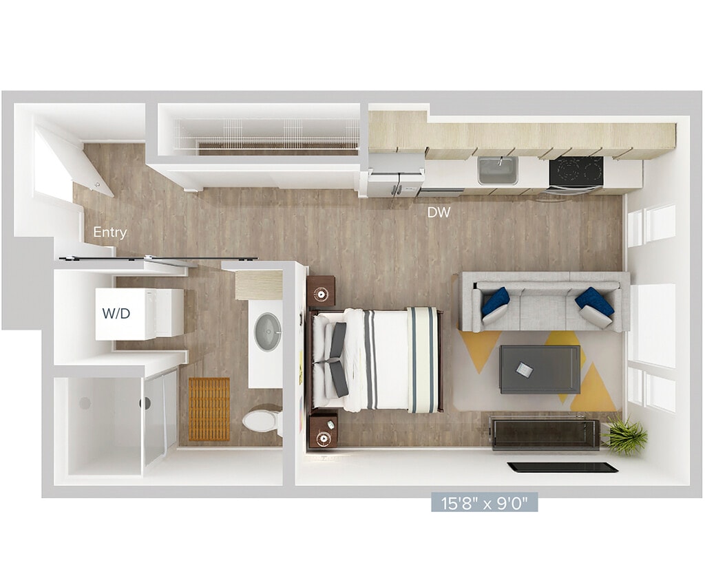 Apartment Model: SM04From $2,120Studio, 1 Bath, 505-521 sq ftAvailable March 2, 2026Floor plans are artist's rendering. All dimensions are approximate. Actual product and specifications may vary in dimension or detail. Not all features are available in every rental home. Please see a representative for details.