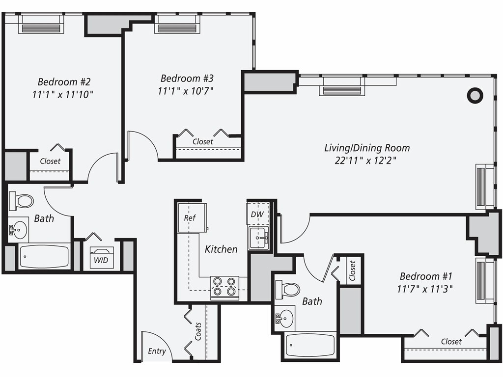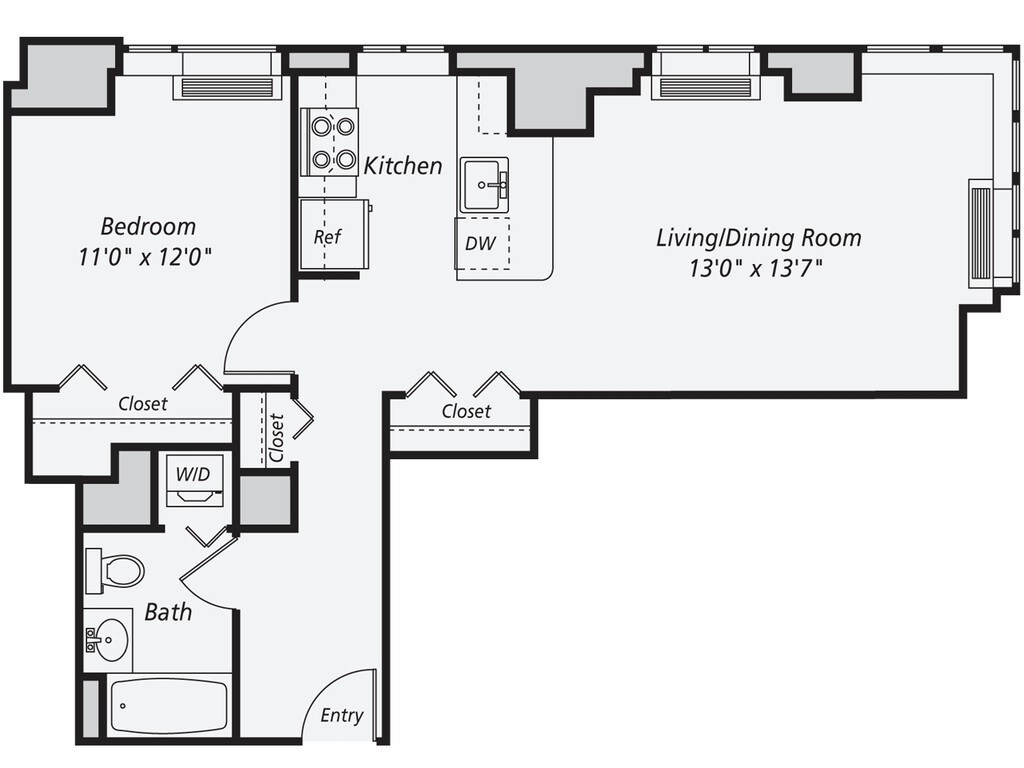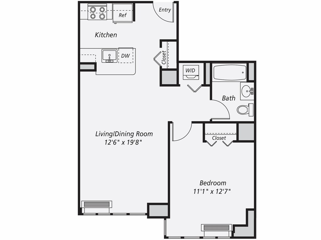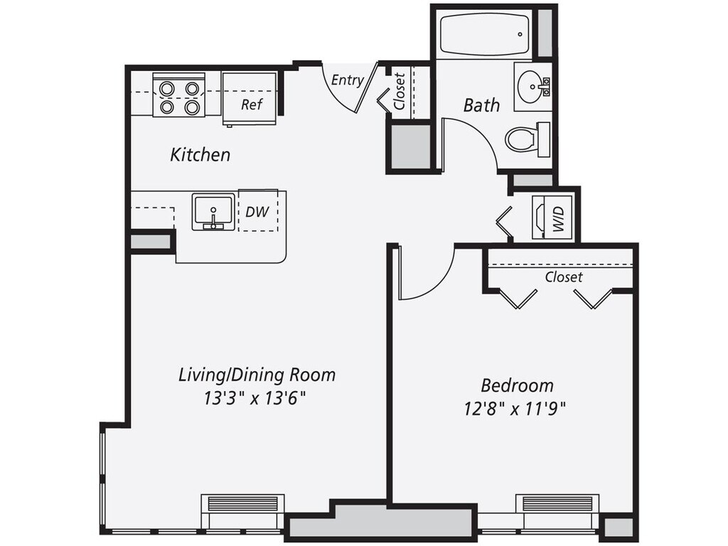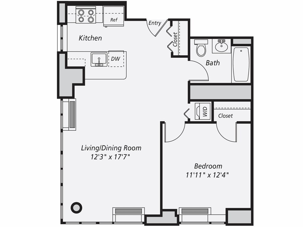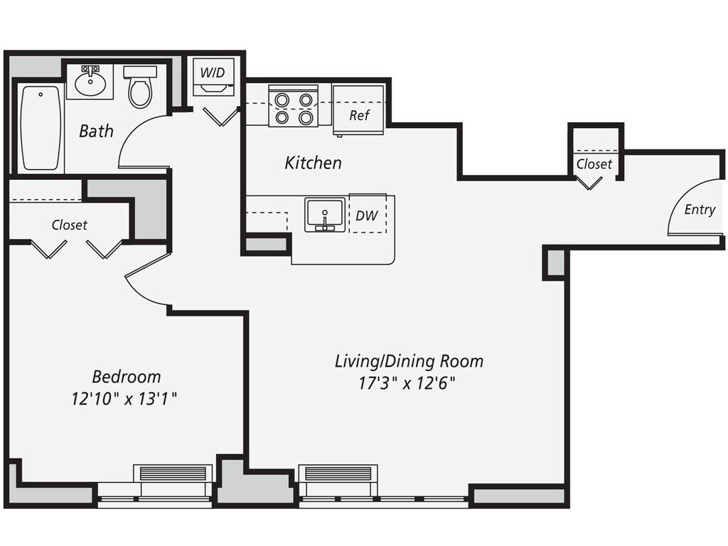 A13 - Floorplan 1 Apartment Unit: 1213Apartment Model: A131 Bedroom, 1 Bath, 658 sq ftAvailable NowFloorplan A3