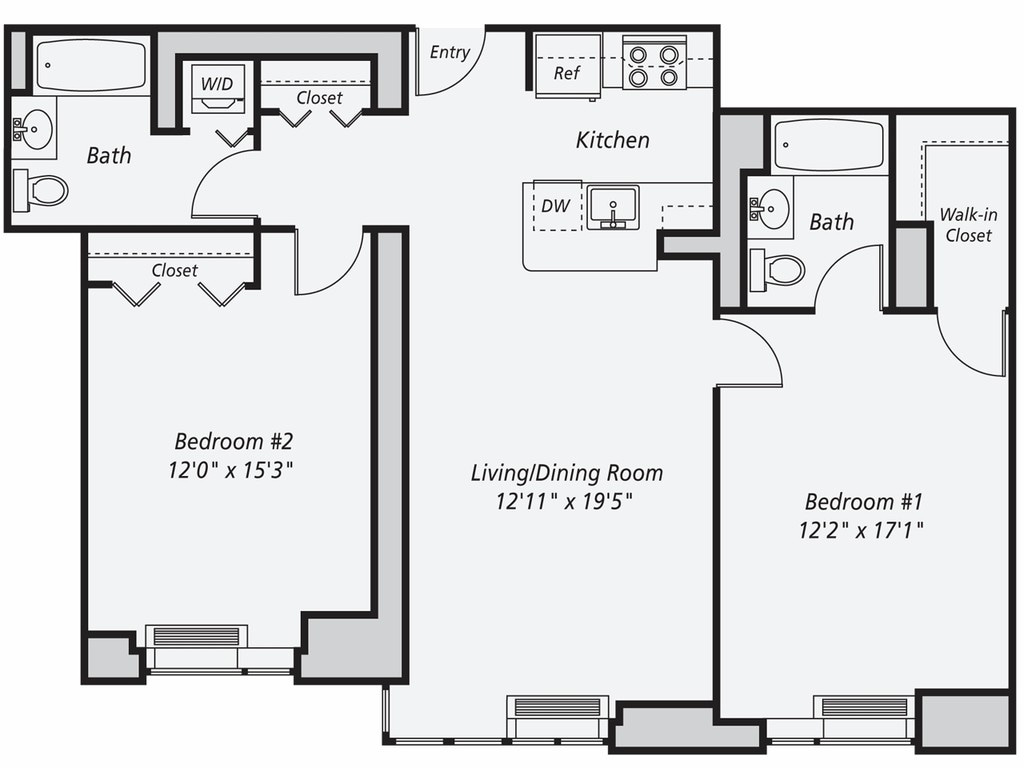 1 Bed, 1 Bath, 664-674 sq ftAvailable NowModel Gallery