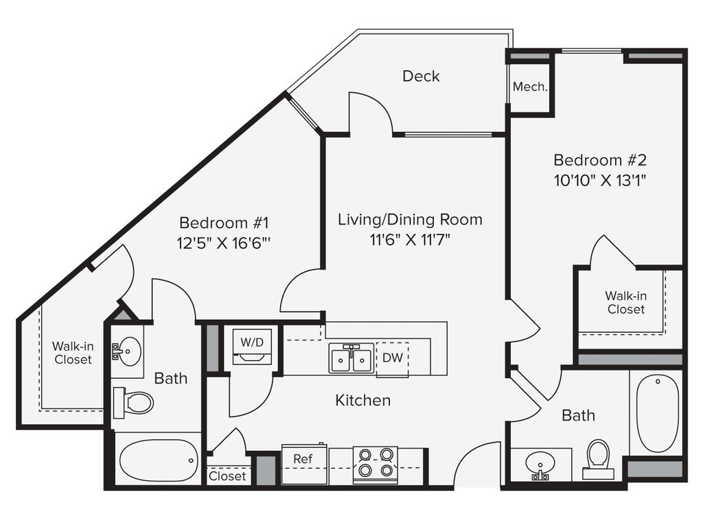 2 Beds, 2 Baths, 808-813 sq ftAvailable NowCheapest 2 BedroomThis is the cheapest 2 Bedroom at this PropertyModel Gallery