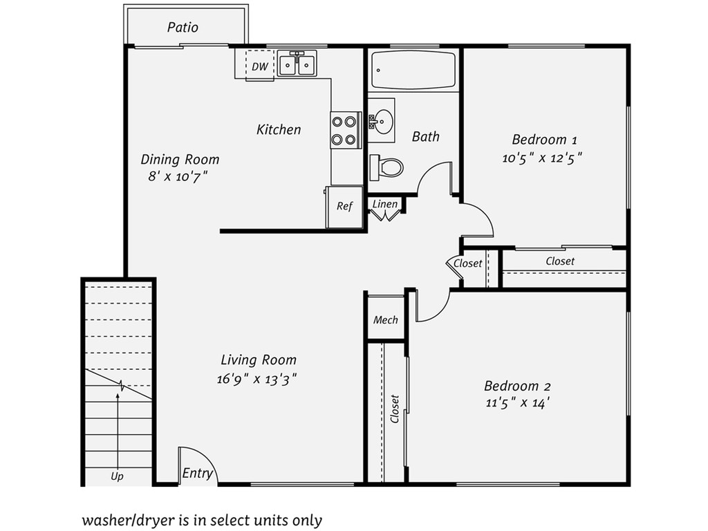 2 Beds, 1 Bath, 875 sq ftAvailable NowModel Gallery