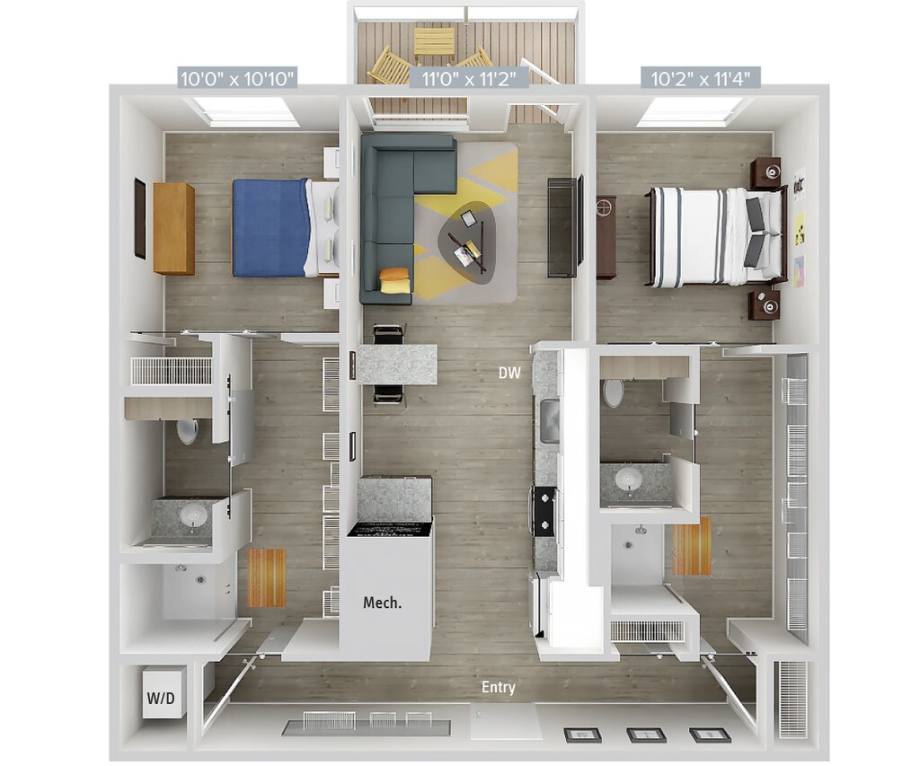Apartment Model: B2-979SF-Apt164$3,6322 Bedroom, 2 Bath, 979 sq ftAvailable NowFloor plans are artist's rendering. All dimensions are approximate. Actual product and specifications may vary in dimension or detail. Not all features are available in every rental home. Please see a representative for details.
