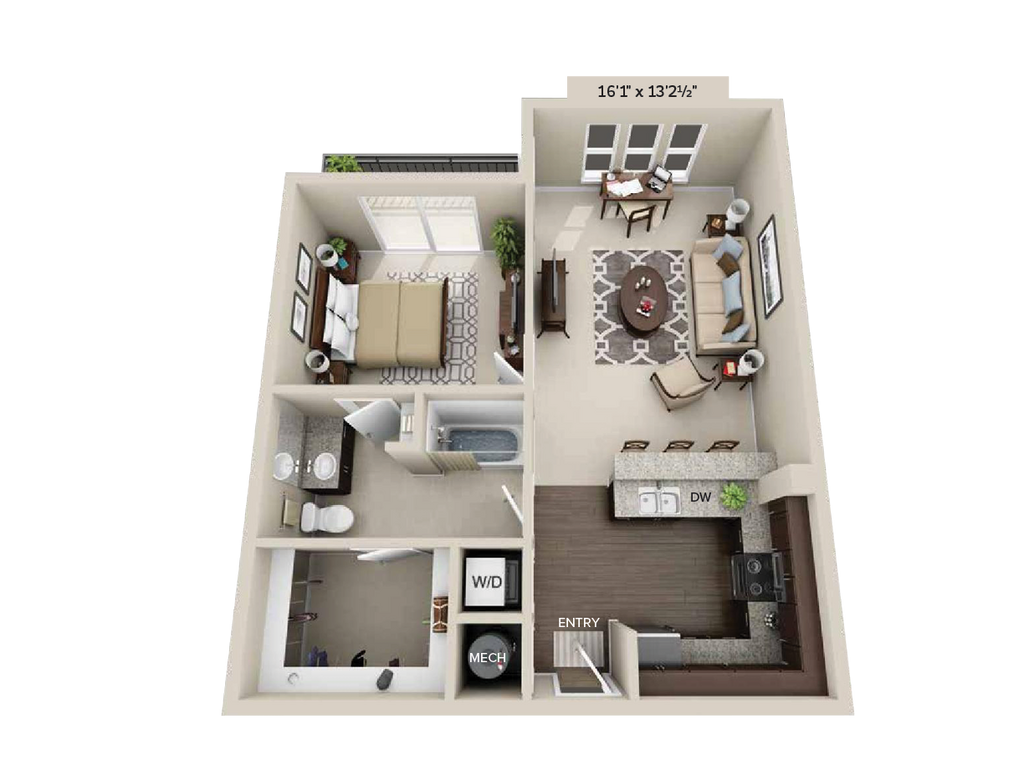 1 Bed, 1 Bath, 925 sq ftAvailable NowLargest 1 BedroomThis is the largest 1 Bedroom at this PropertyModel Gallery