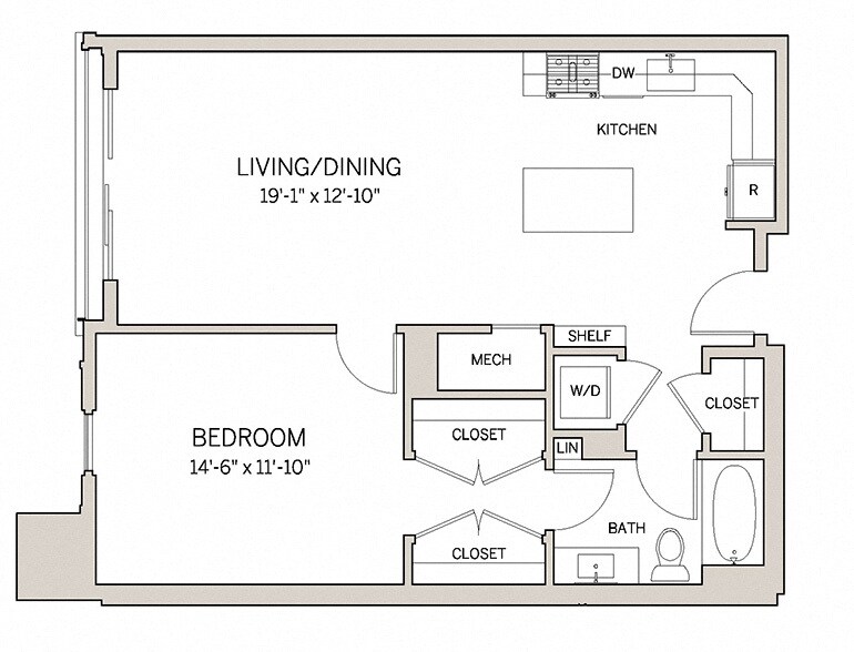 1 Bed, 1 Bath, 859 sq ftAvailable NowLargest 1 BedroomThis is the largest 1 Bedroom at this PropertyModel Gallery