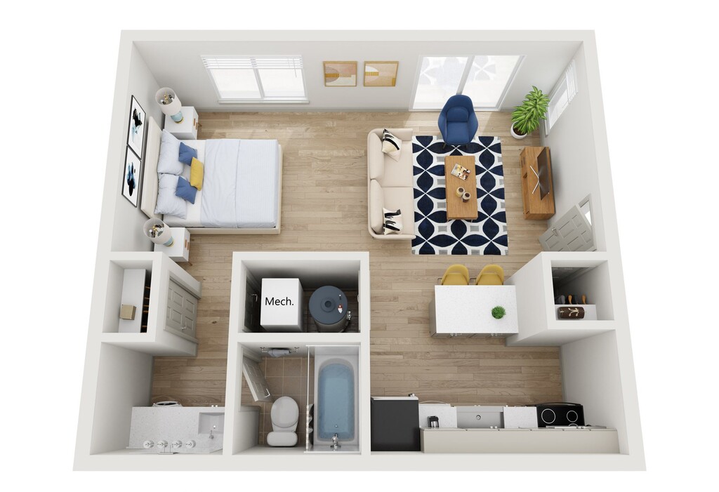 Apartment Model: StudioFrom $1,299Studio, 1 Bath, 525 sq ftAvailable NowFloorplansPhotos![]()