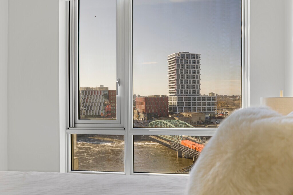 The brand-new light filled suites feature 4-piece stainless steel ENERGY STAR appliances, laminate flooring throughout, quartz countertops, window coverings in the living room and bedroom, in-suite laundry, and more. The majority of suites offer private balconies with ground floor units featuring oversized private terraces overlooking the Ottawa River and an unparalleled view of the nation’s capital. Building amenities include a Fitness Centre, Outdoor lounge and BBQ, Lounge & Party room, wi-fi in common areas, elevator access, storage lockers, and bike and car parking. Aalto II is Zibi’s newest purpose-built residential rental building, located on the shores of the Ottawa River, overlooking Canada’s Supreme Court, Parliament, and National Gallery of Canada offering a desirable location adjacent to the riverfront Tesasini Park. Enjoy waterfront living just steps from downtown Ottawa and Gatineau with easy access to the LRT, public transit, and multi-use pathways.