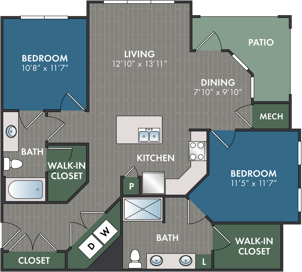 1 Bed, 1 Bath, 1057 sq ftLargest 1 BedroomThis is the largest 1 Bedroom at this PropertyModel Gallery