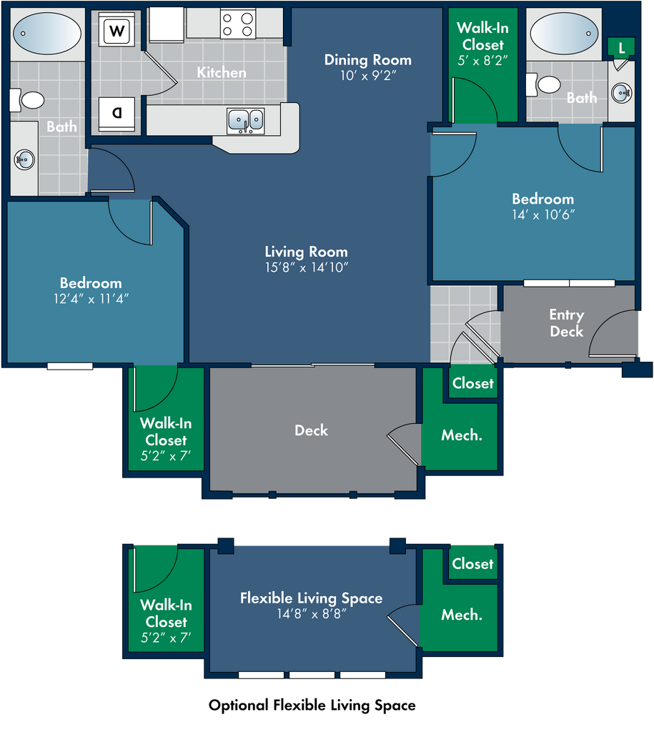 - Large and Inviting One, Two and Three Bedroom Open Floor Plan Options, Some with Flexible Living Spa