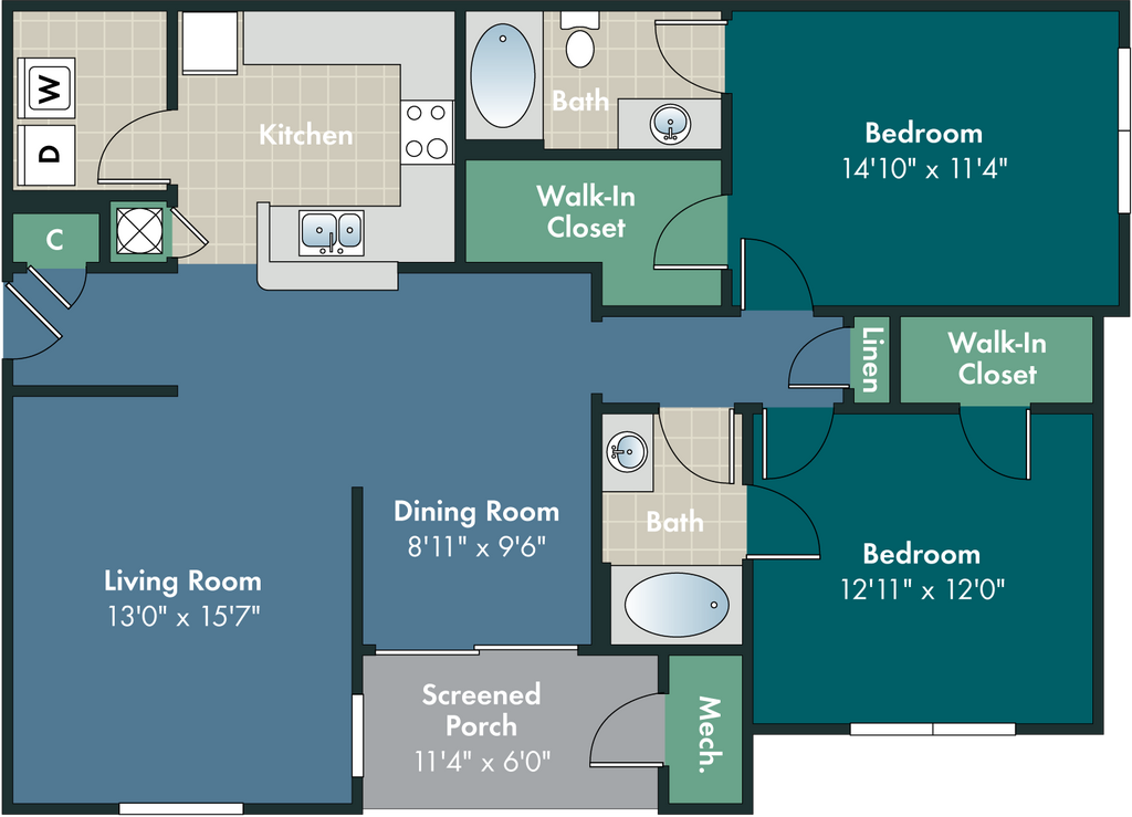 1 Bed, 1 Bath, 699 sq ftAvailable NowModel Gallery