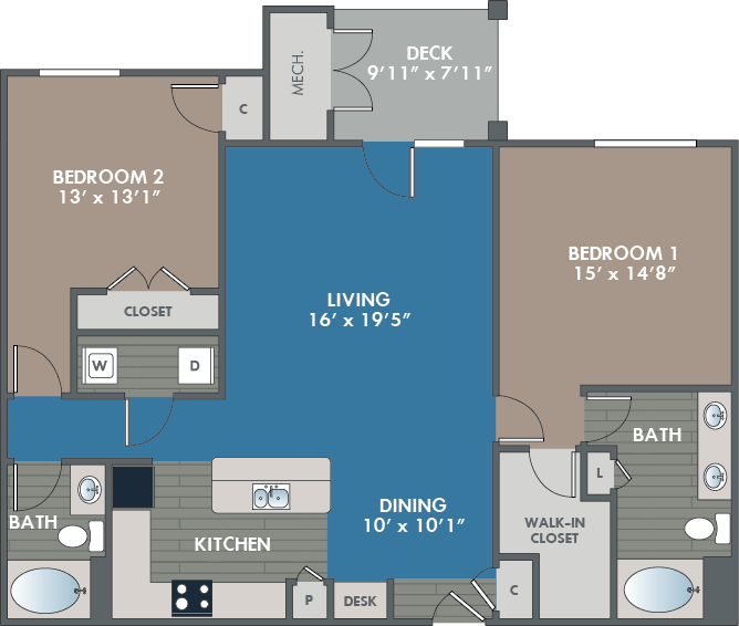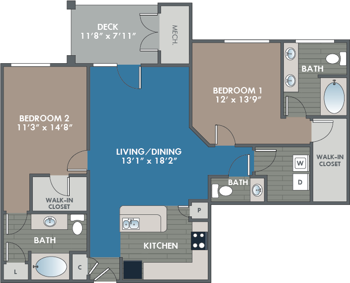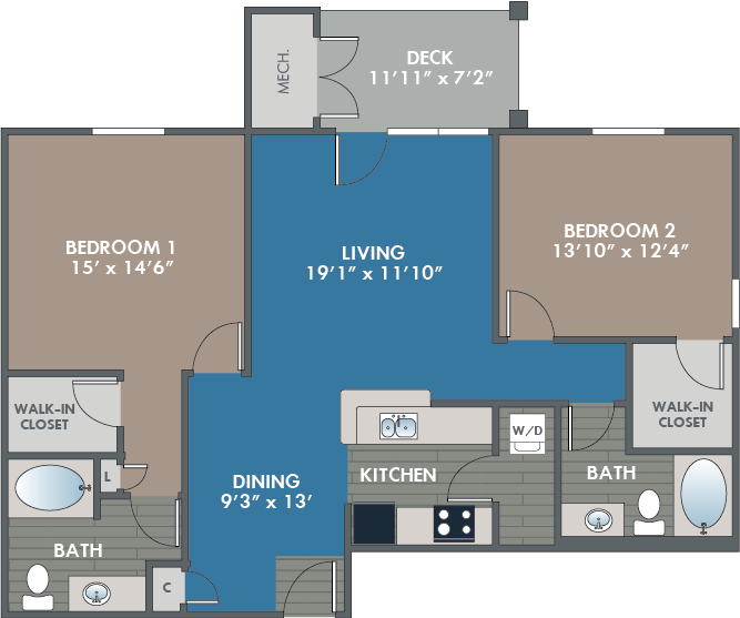 2 Beds, 2 Baths, 1339 sq ftAvailable NowModel Gallery