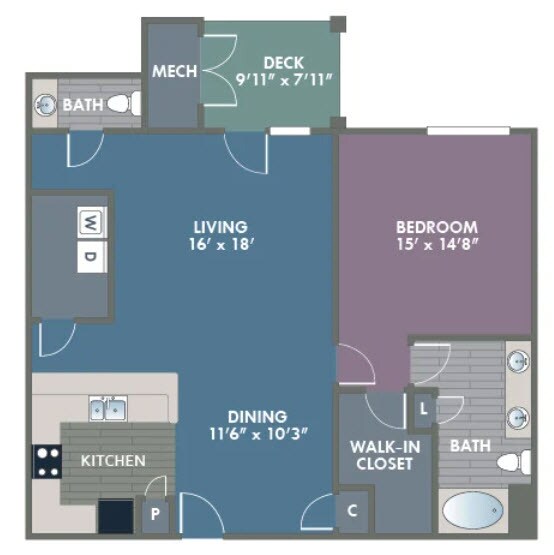 Charleston - Floorplan 4 Apartment Unit: 6-610Apartment Model: CharlestonFrom $2,0081 Bedroom, 1.5 Bath, 1199 sq ftAvailable December 13, 2025Columbia