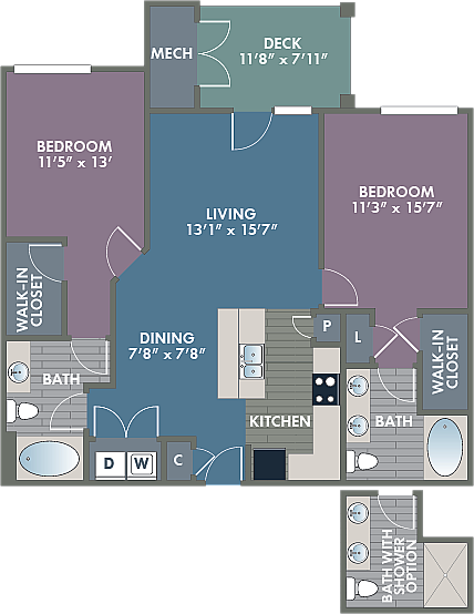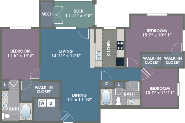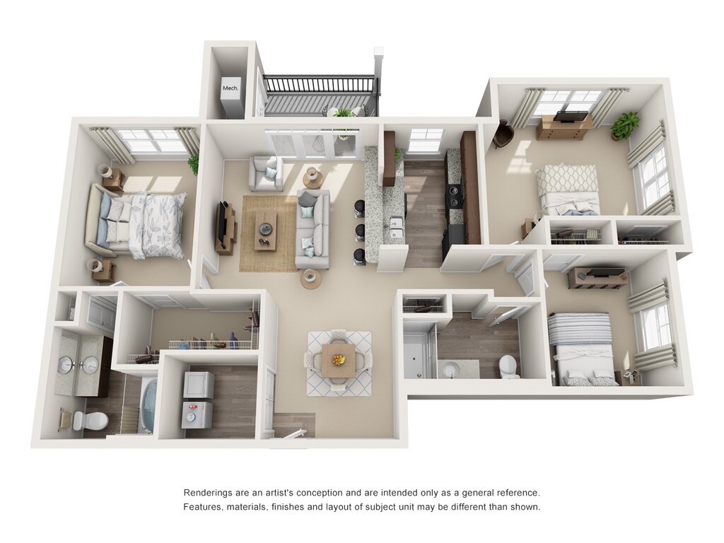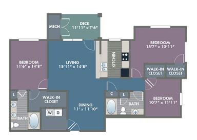 - One, Two, and Three Bedroom, Open Floor Plan Options