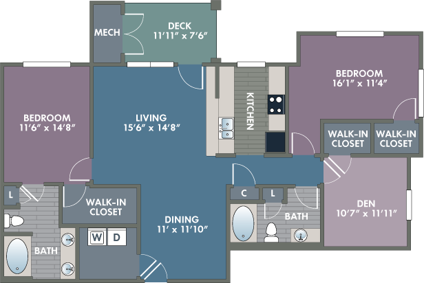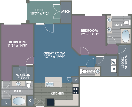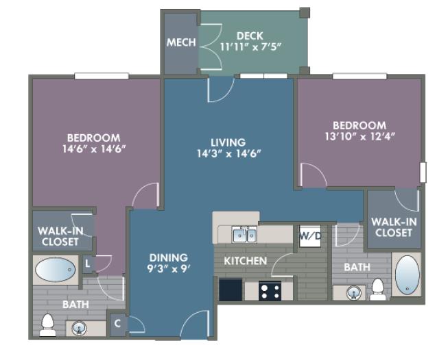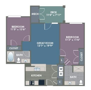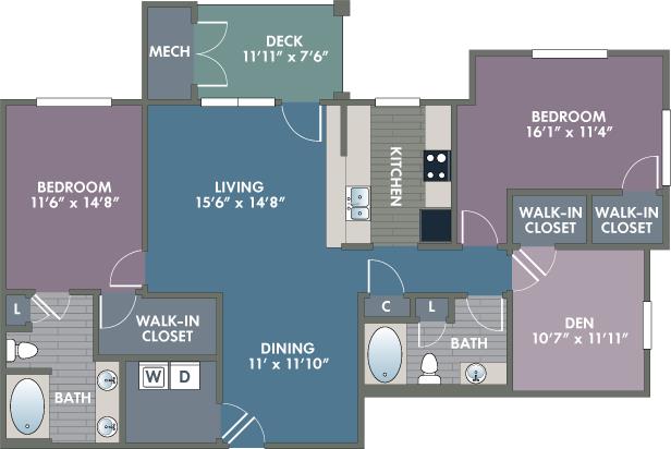 1 Bed, 1.5 Baths, 1199 sq ftAvailable Dec 13Largest 1 BedroomThis is the largest 1 Bedroom at this PropertyModel Gallery