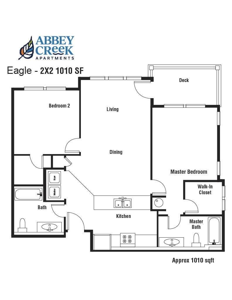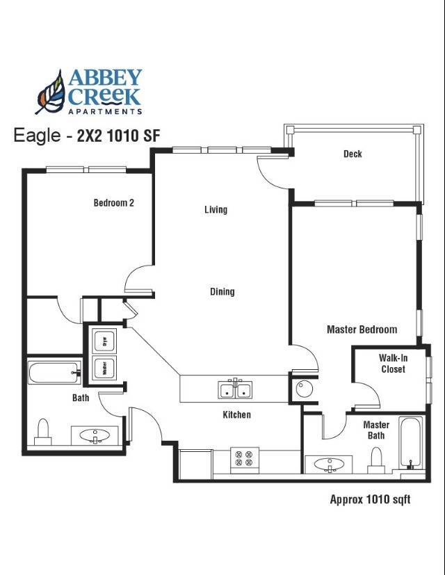 2 Beds, 2 Baths, 1010 sq ftLargest 2 BedroomThis is the largest 2 Bedroom at this PropertyModel Gallery