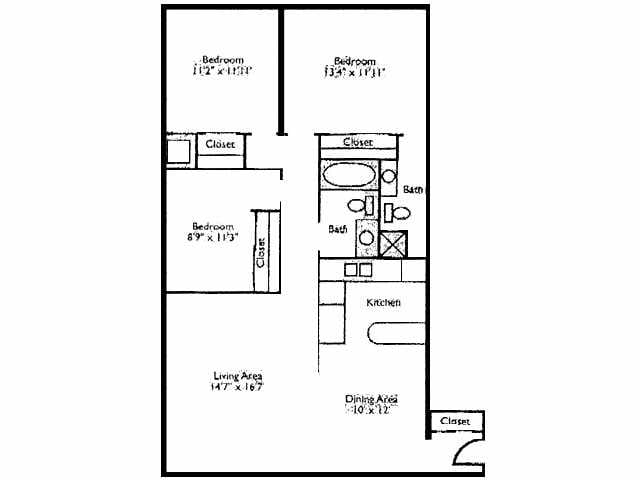 Apartment Model: 3 bedroomFrom $1,1063 Bedroom, 2 Bath, 1136 sq ftUnavailable![]()