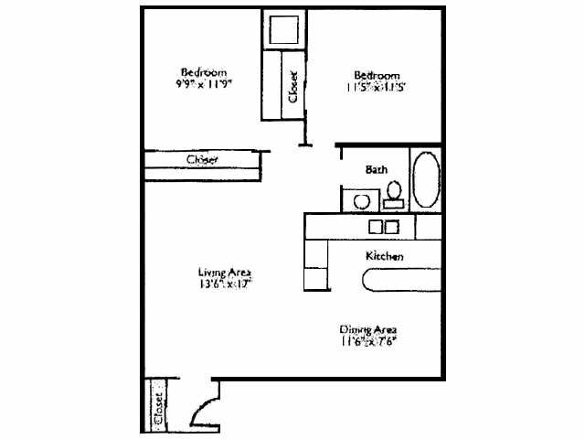 Apartment Model: 2 bedroomFrom $8962 Bedroom, 1 Bath, 795 sq ftAvailable NowFloorplansPhotos![]()