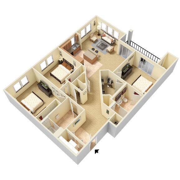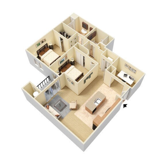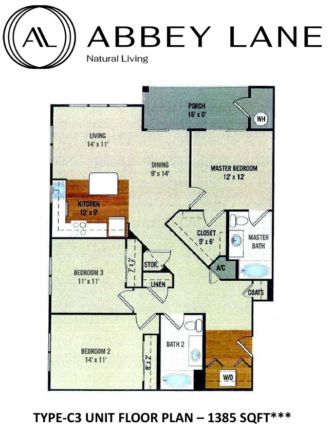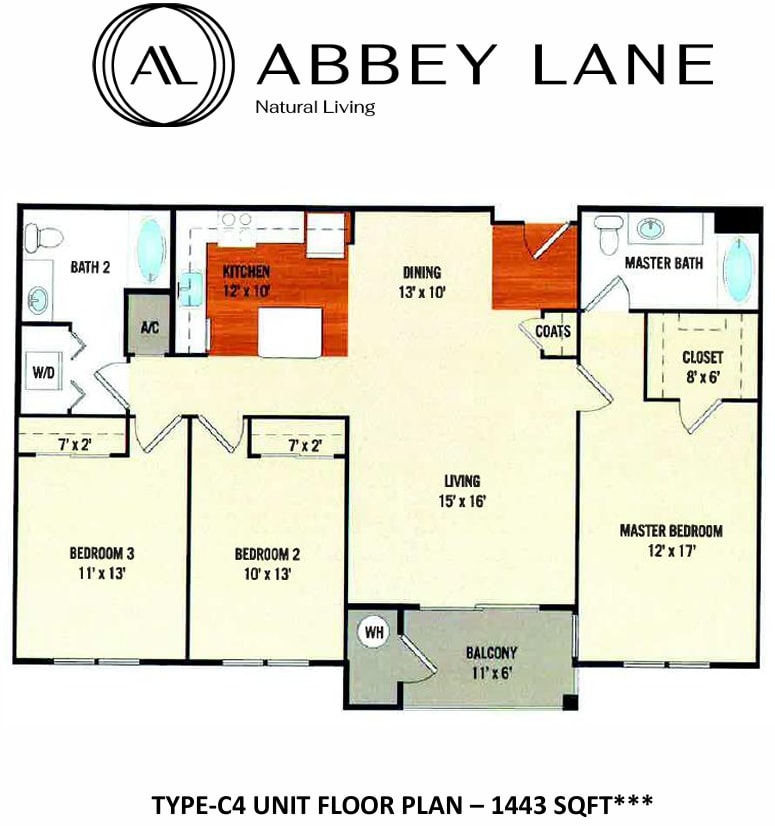 1 Bedroom to 3 Bedroom Apartments at Abbey Lane currently range from $2,405 to $3,000