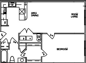 1 Bed, 1 bath - Floorplan 3 2 Bedrooms