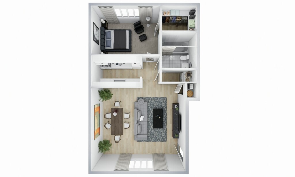 2 Bedroom 1 Bath Renovated - Floorplan 1 Apartment Unit: 6030-024Apartment Model: 2 Bedroom 1 Bath RenovatedFrom $1,1422 Bedroom, 1 Bath, 900 sq ftAvailable Now2 Bedroom 1 Bath