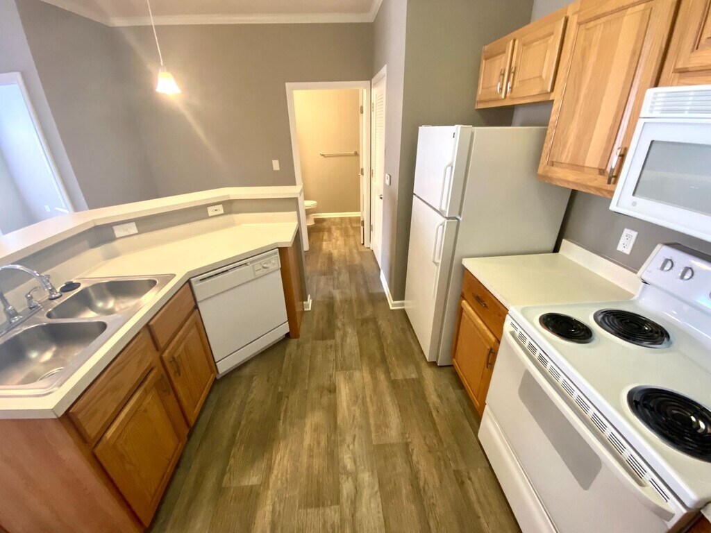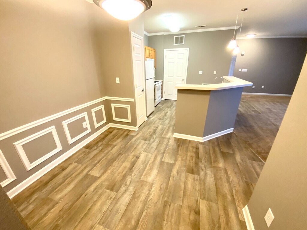 August 12, 2015My boyfriend & I have lived here for about a year and a half now. We are in the middle of our 2nd lease. We love the neighborhood, and especially our apartments location. We overlook a field with trees, and our balcony is on the end next to a big tree, so very private! We feel very safe living here, and the alarm system makes me feel very comfortable. I love that we have our own laundry room. It's small, but it works! Plus it has storage above the W&D hookups, which is great for all my cleaning ...supplies & camping storage! We live in the largest 1 Bed 1 Bath. It is the perfect size for one person, but it is a little cramped for 2 adults. There seems to be a lot of storage space, but in reality it's pretty short when you have as much stuff as we do. Our outside storage is full with holiday decor, etc. The inside closets are pretty small. The kitchen lacks space bigtime. There is hardly ANY cabinet space & we have a very small pantry. Again, it works, just small. We like the size of the living room & bedroom. Bathroom is okay sized too. Again, would be beyond perfect for one adult. We feel a little cramped at times, but we have a lot of stuff. I work my second job from home, and I have overtaken the dining room and made it into an office. There is absolutely nowhere for a desk. The living room can only be arranged one way, especially for us because we have a sectional. Overall, we like our apartment. It's a little too pricey for the space, but we have enough stuff to furnish a 2 bedroom house easily. But, we are always getting complimented on how nice our place is.Read MoreReview from Apartments.com