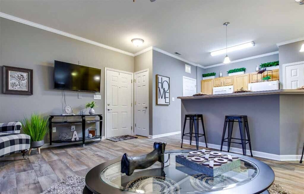 August 1, 2015We love our apartments! We have lived here a bit over a year and love the location! We are close to grocery and restaurants, but secluded and private at home! We love the fact that every apartment has a security system. This makes me much more comfortable at night. We love that our complex also has a pool, dog park, and basketball court. The only cons I have are the price and the office staff. I have had to complain about the same issues too many times before anything ever gets accomplished. ...They don't seem to take things seriously and every time I go in the office there are always new people. They can't seem to keep a decent staff. For $700 a month in a 1 bed 1 bath apartment, I expect any and all issues to be taken seriously and be accomplished quickly.Read MoreReview from Apartments.com