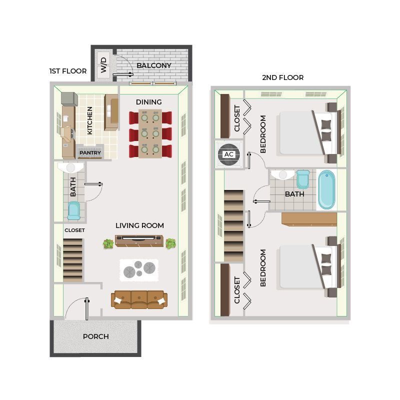 2 Bed/1.5 Bath - Floorplan 1 2 Bed/2.5 Bath